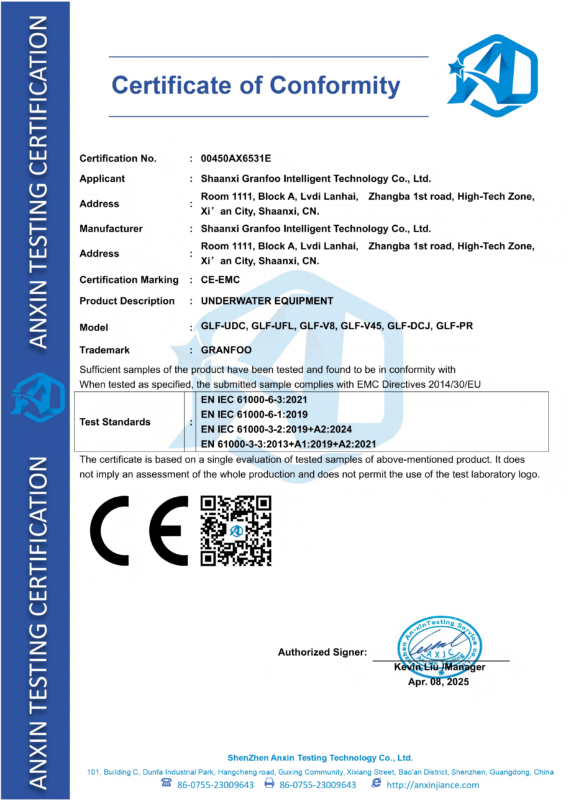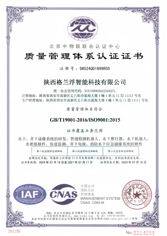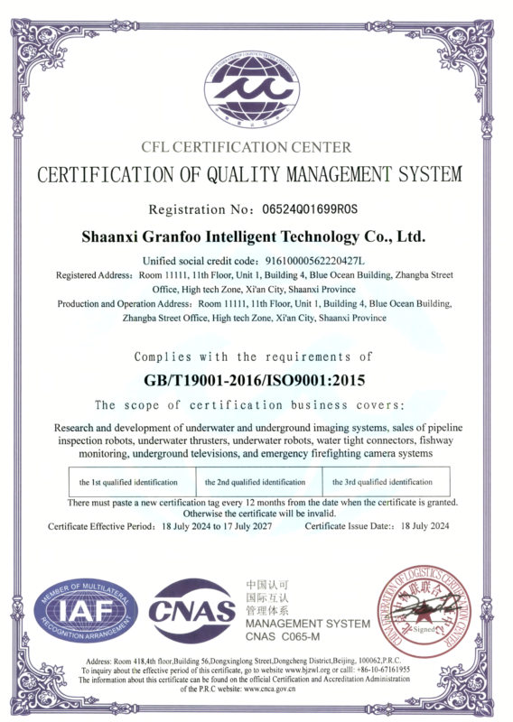 Shaanxi Granfoo Industrial Co.,Ltd. is a modern high-tech enterprise, specialized R & D and production of underwater television camera, downhole camera, and watertight connectors. Underwater television camera monitoring system for marine development and maritime operations and petroleum, and water conservancy departments of the necessary equipment, is currently in the underwater environment, timely access to clear images of the main method has been widely applied to marine and terrestrial exploration of water resources.